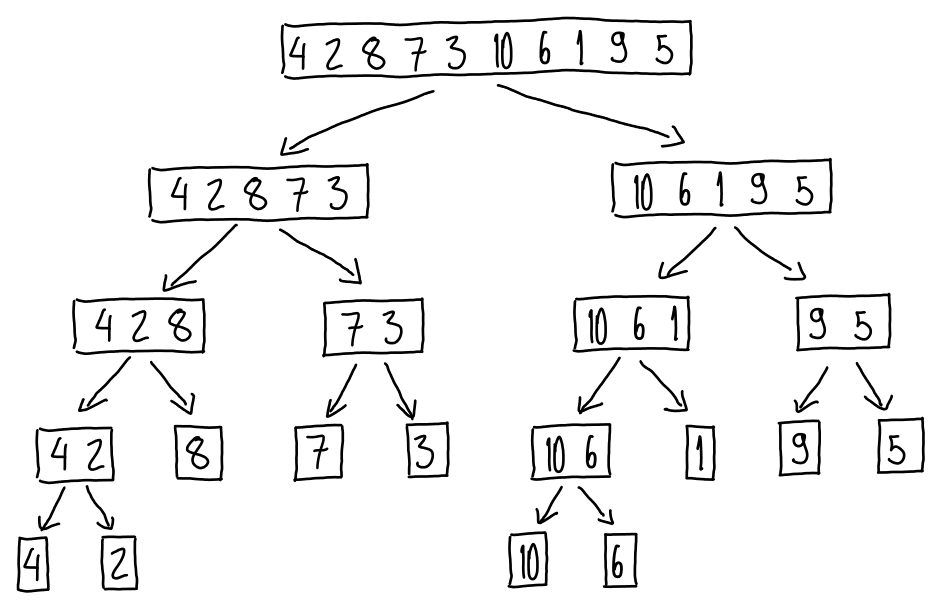 Finalmente, podemos ordenar nossa lista de números pelo algoritmo de ordenação por intercalação utilizando o programa que acabamos de implementar.